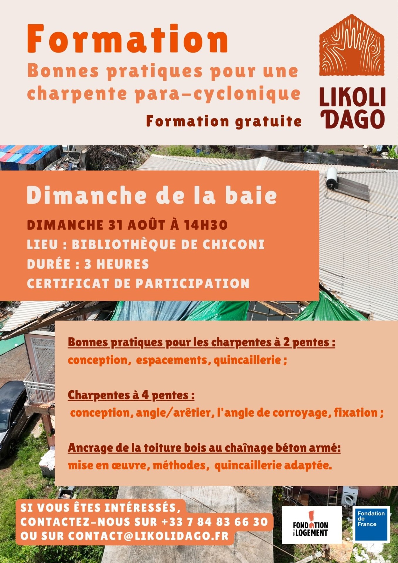 Cette formation vient répondre aux constats du diagnostic post-cyclone Chido sur les habitations endommagées, où plusieurs mauvaises pratiques ont été relevées au niveau des toitures, complètement ou partiellement arrachées :